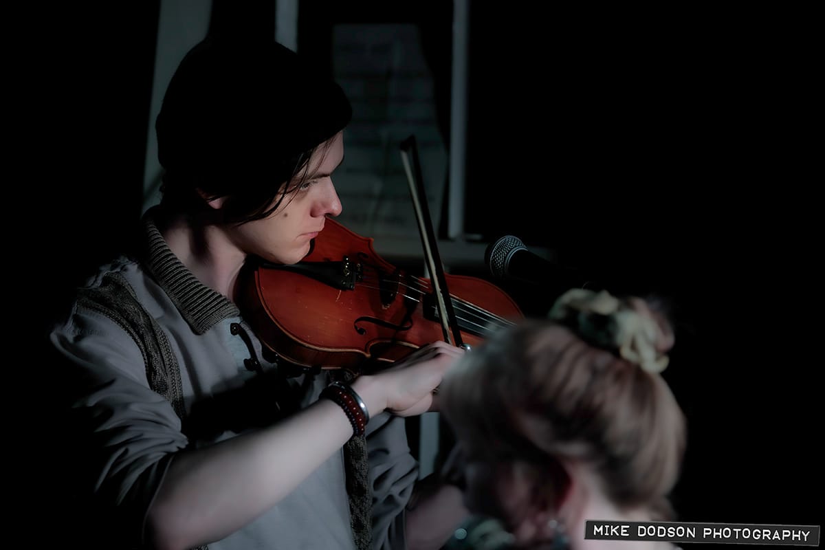 Aoife Higgins is an Irish singer-songwriter based in Ludlow who played a solo set of originals and folk tunes in the first half, and in the second was joined by Daniel Wilczynski on violin and keyboards, and Rhubee Scott-Wilson on the upright bass, playing indie-folk tunes about devils, cross-dressing sailors and ghosts.
