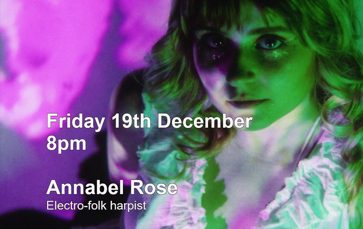 Next Friday we are looking forward to hosting Annabel Jones - AKA Annabel Rose, who will be playing her electro-folk soundscapes, and dancier, dreamier numbers upon harp and keyboard. Expect gorgeous ethereality.